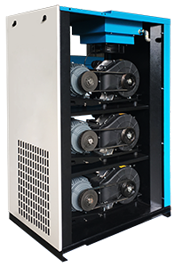 The secondary cooler too boasts proven greatness. It ensures a particularly low compressed air outlet temperature. The cooling fan start/stop automatically according to the discharge temperature, which can save energy for customer.